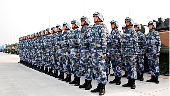 (一)、动作要领:当听到“跨立”的口令后,左脚向左跨出约一脚之长,两腿挺直,上体保持立正姿势,身体重心落于两脚之间。两手后背,左手握右手腕,拇指根部与外腰带下沿(内腰带上沿)同高;右手手指并拢自然弯曲,手心向后。跨立时,要做到准确、迅速、保持六个字。