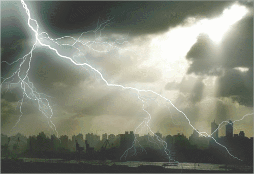 5.如果在户外遭遇雷雨,来不及离开高大物体时,应马上找些干燥的绝缘物放在地上,并将双脚合拢在上面,切勿将脚放在绝缘物以外的地面上,因为水能导电。